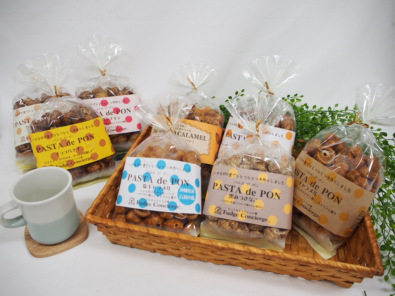 シェル形パスタをポンッ!した、サクサク楽しいキャラメル菓子。