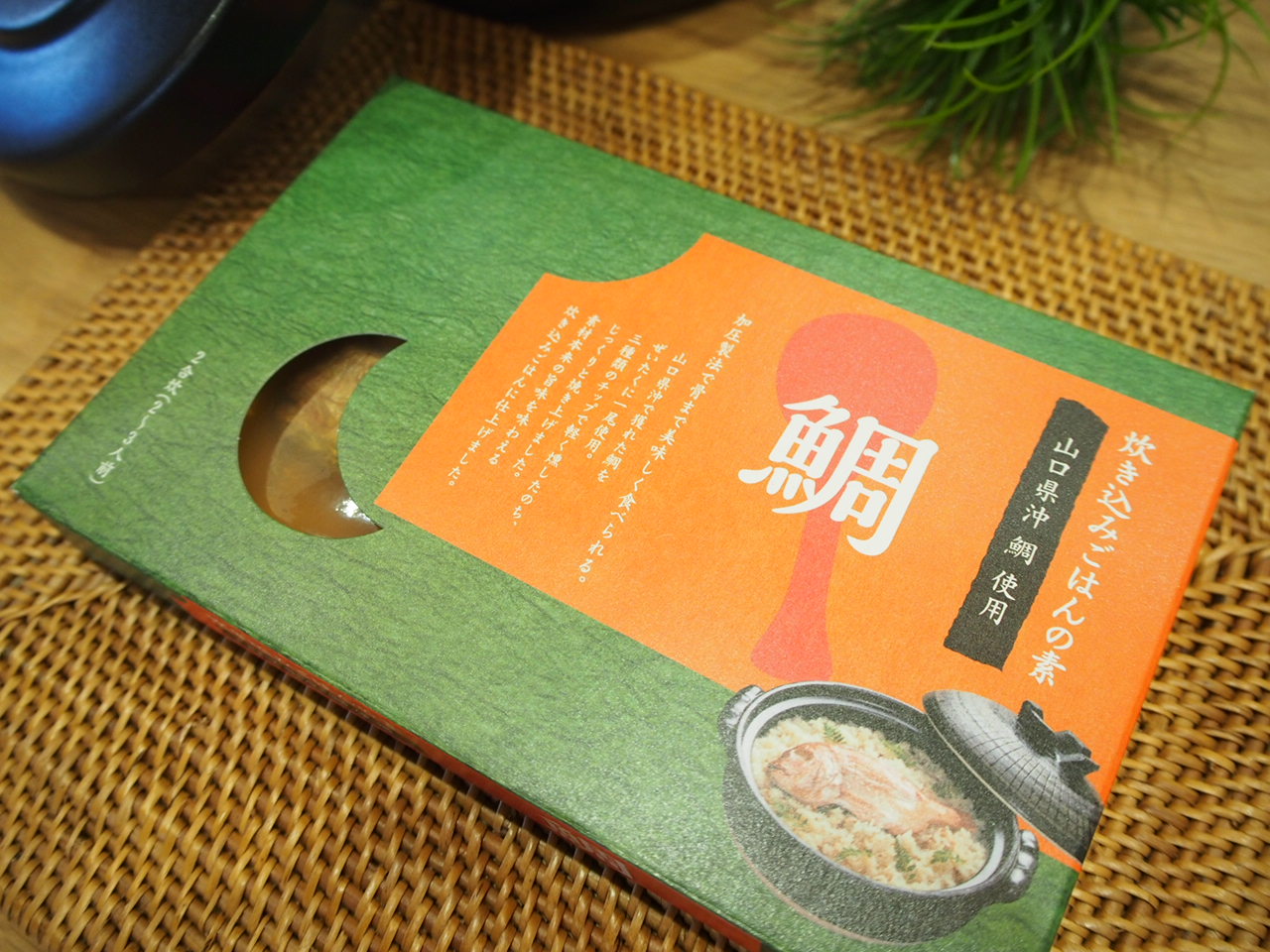1袋に山口県沖の鯛がまるっと1尾入ったこちらの炊き込みご飯は、鯛の淡泊だけどコクのあるお味とほのかに燻した香りが特徴。
