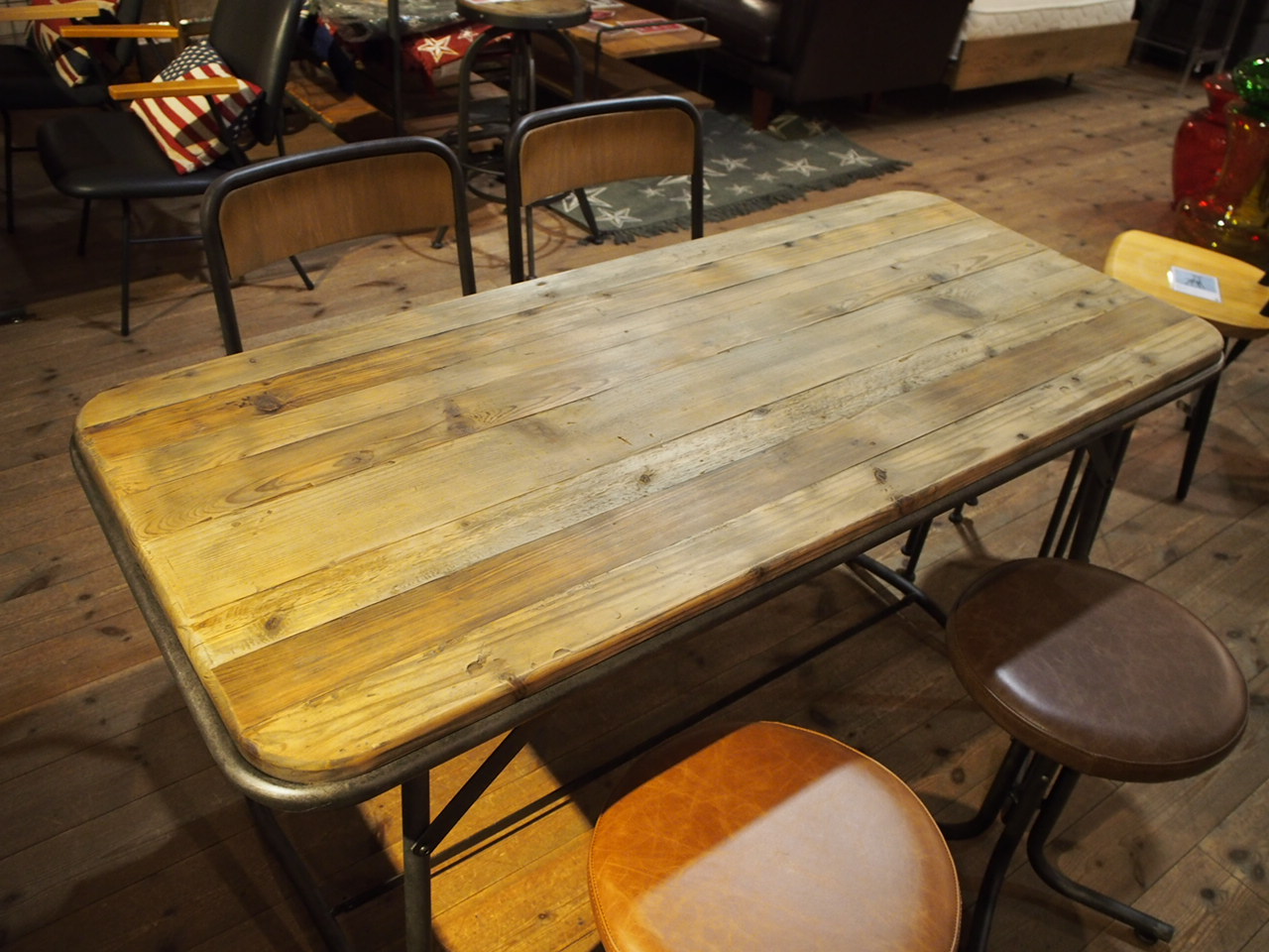 ひょろっとした可愛い古材のテーブルです。